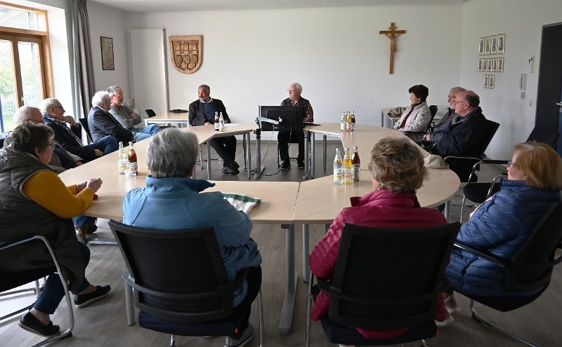 HAK-Vorsitzender Georg Schmidbauer hält vor der Schlossbesichtigung ein Referat über die Erbauerin Fürstin Augusta Sophia von Lobkowitz (1624 - 1682) im Sitzungssaal des Waldthurner Rathauses.