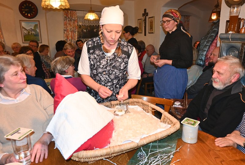 Beim Federnschleißen der Hutza-Moila verirrten sich manche flauschige Daunen in den Raum.