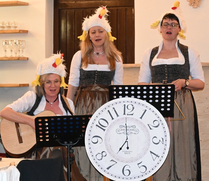 Mit passenden Lidern zum Thema "Wirtshaus" begleitet die Gesangsgruppe TriAngel mit Doris Völkl, Steffi Daubenmerkl und Andrea Götz (von links) die Präsentation.